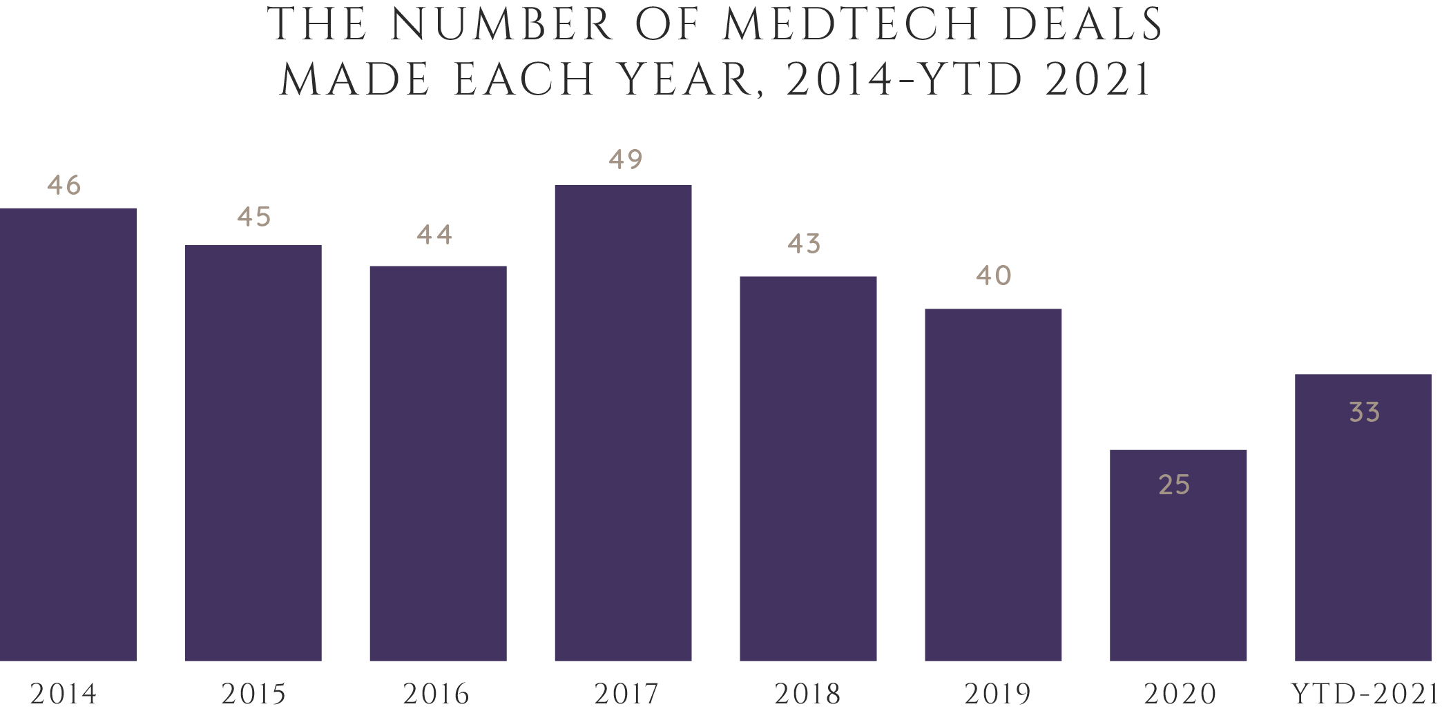 During 2020 and the impacts of the pandemic, many companies were tentative to spend money, and most elective surgeries were halted. Once these elective procedures began to come back, the sector began to recover, and firms became more open to adding assets and buying out competition. This is a pattern that experts believe will continue, especially as long as stock prices remain up and interest rates remain low. The bigger medtech companies are seeking acquisition targets that offer high growth and significant market opportunities. Other target considerations may include gross margins, differentiated products, and any barriers to entry.