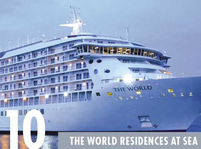 10) THE WORLD RESIDENCES AT SEA – The World is the largest private residential ship, and it is 644 feet long. There are 165 individual homes on board this ship, and it travels to different parts of the world every few days. This is, by far, one of the most unique retirement options. It is like being on a permanent luxury cruise where all the passengers take a part in the itinerary planning each year.