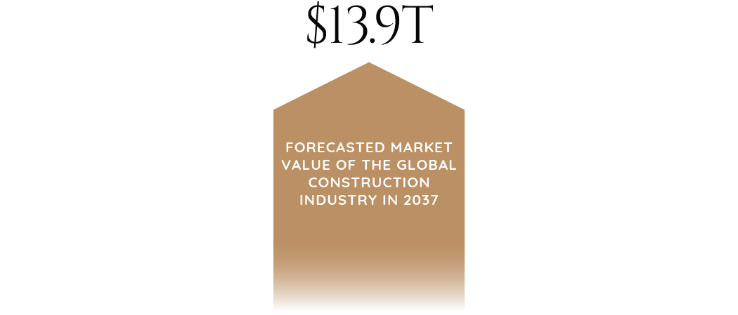 The market value of the global construction industry is forecasted to reach $13.9 trillion in 2037, with China, the U.S., and India contributing 57% of the growth by 2030.