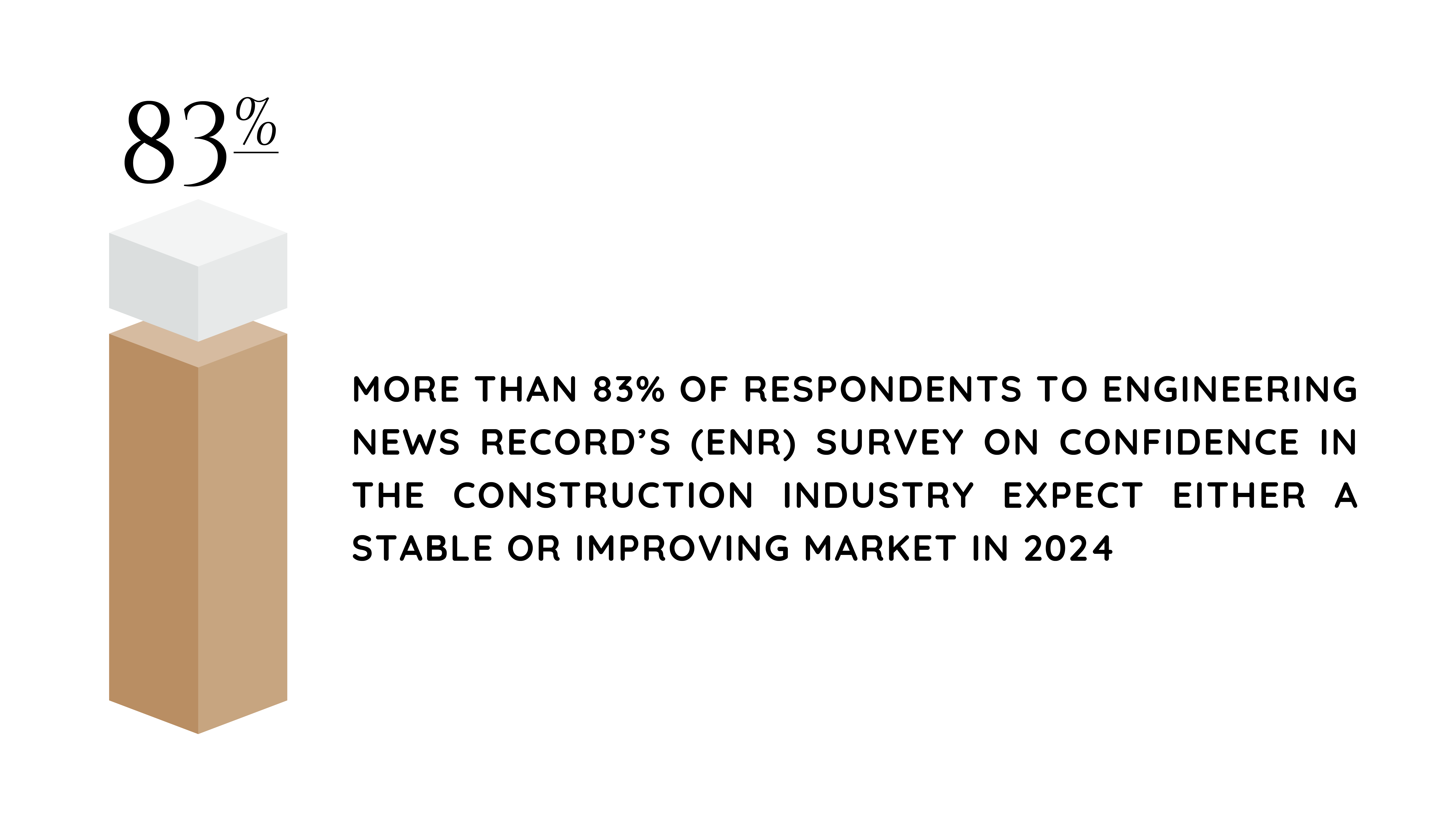Construction executives report confidence that the sector will continue to grow and add jobs through 2024. More than 83% of respondents to Engineering News Record's (ENR) survey on confidence in the construction industry expect either a stable or improving market in 2024.