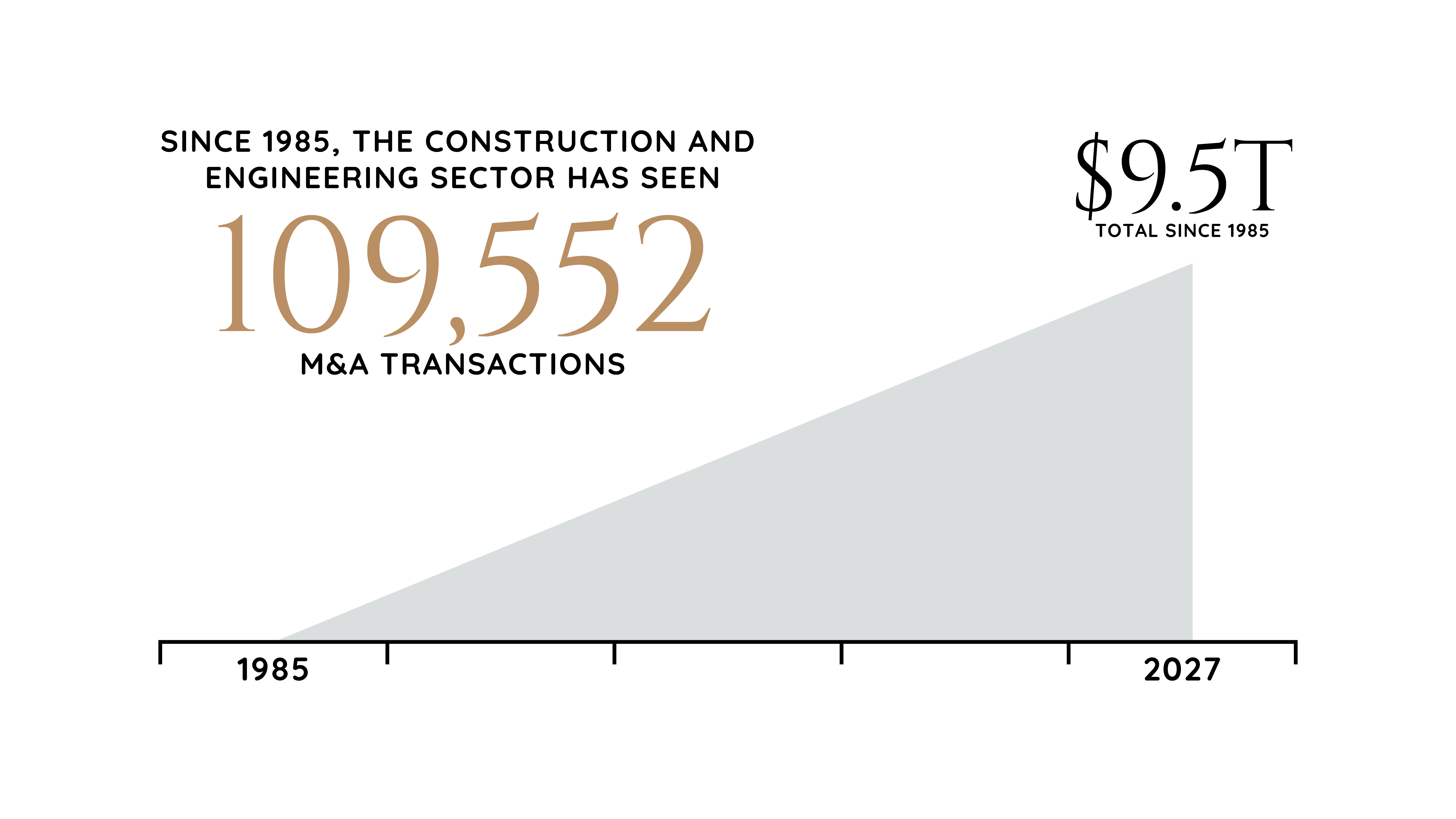Since 1985, the construction and engineering sector has seen 109,552 M&A transactions, totaling $9.5 trillion, underscoring its substantial influence on the global economy. Following vigorous M&A activity in 2021 and 2022, deal volumes and valuations across the construction industry have proven resilient.